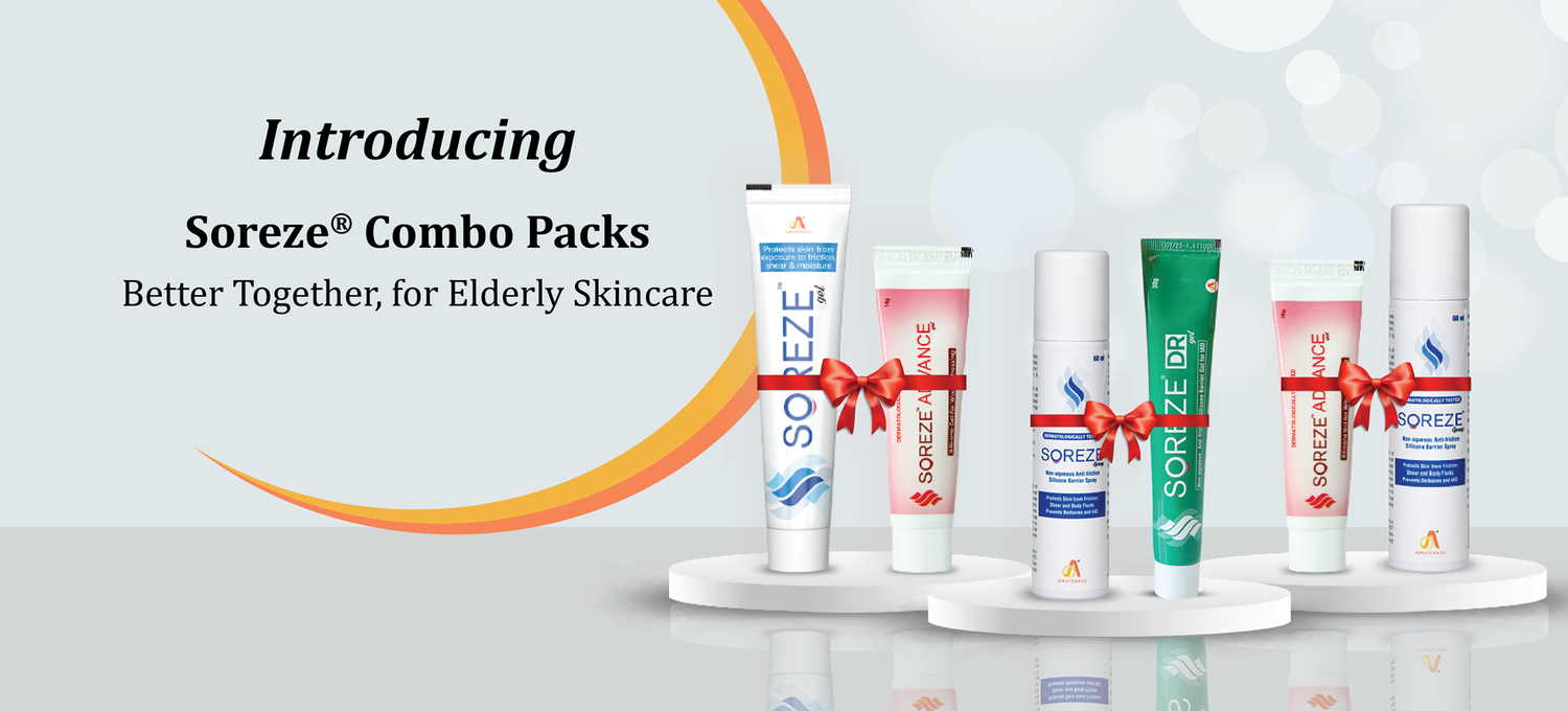 Soreze is specialized range of skin care products that understands the challenges of caring for your beloved elderly. We use our patented silicone-based barrier gel technology to provide a well-designed skin care products to ease the stress faced by your beloved's skin. Soreze enhances the skin protection by inhibiting direct contact of skin with clothing and repelling moisture. so that they should be able to enjoy every moment with you, whether it is a relaxing bath time or a nap time in the recliner next to your recliner.
