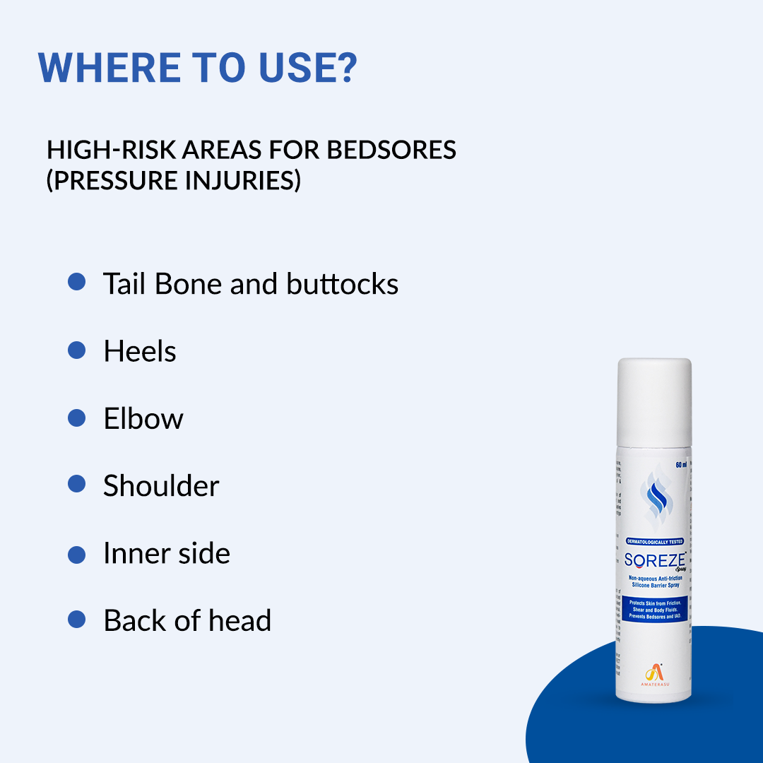Apply Soreze spray on pressure prone areas as shown in the figure below