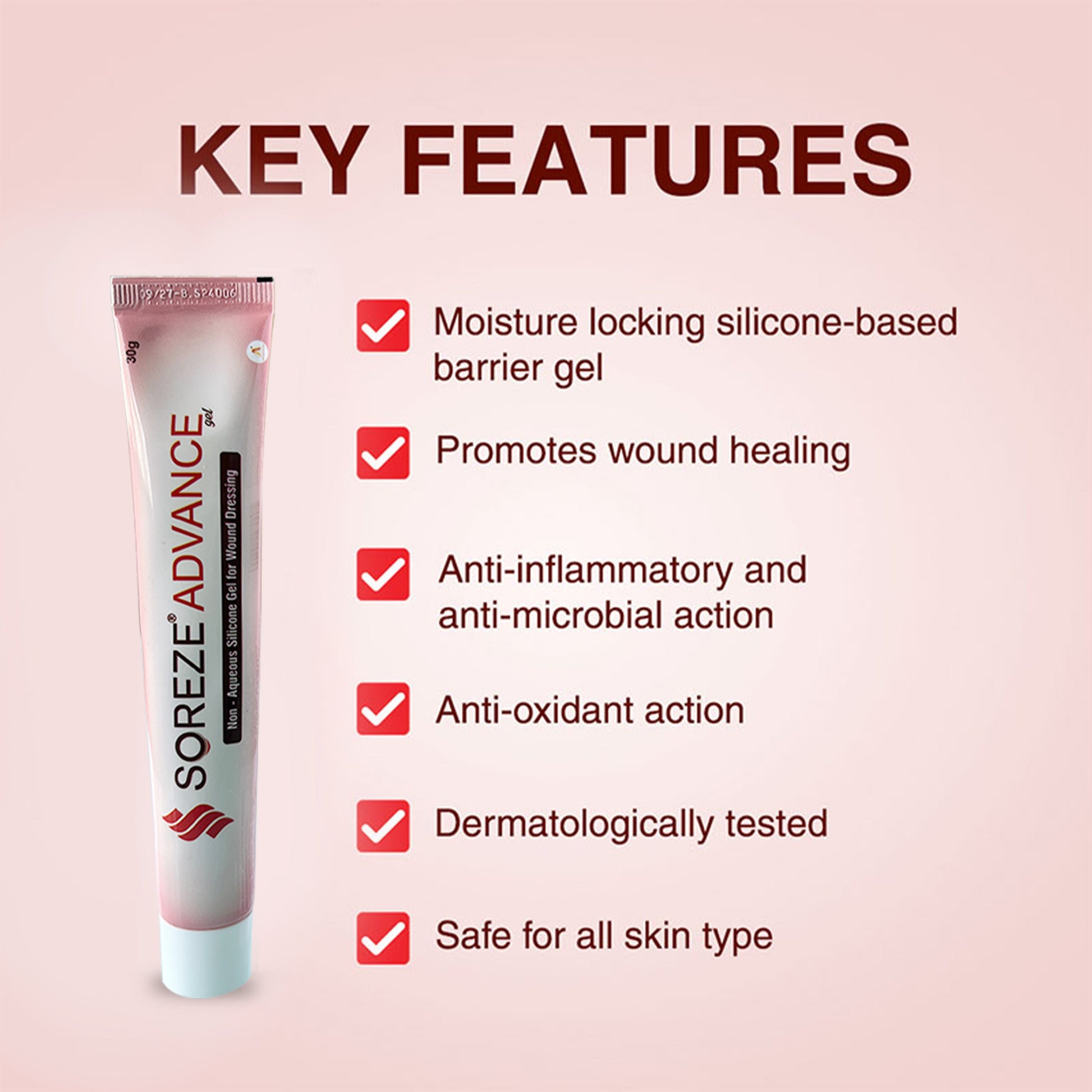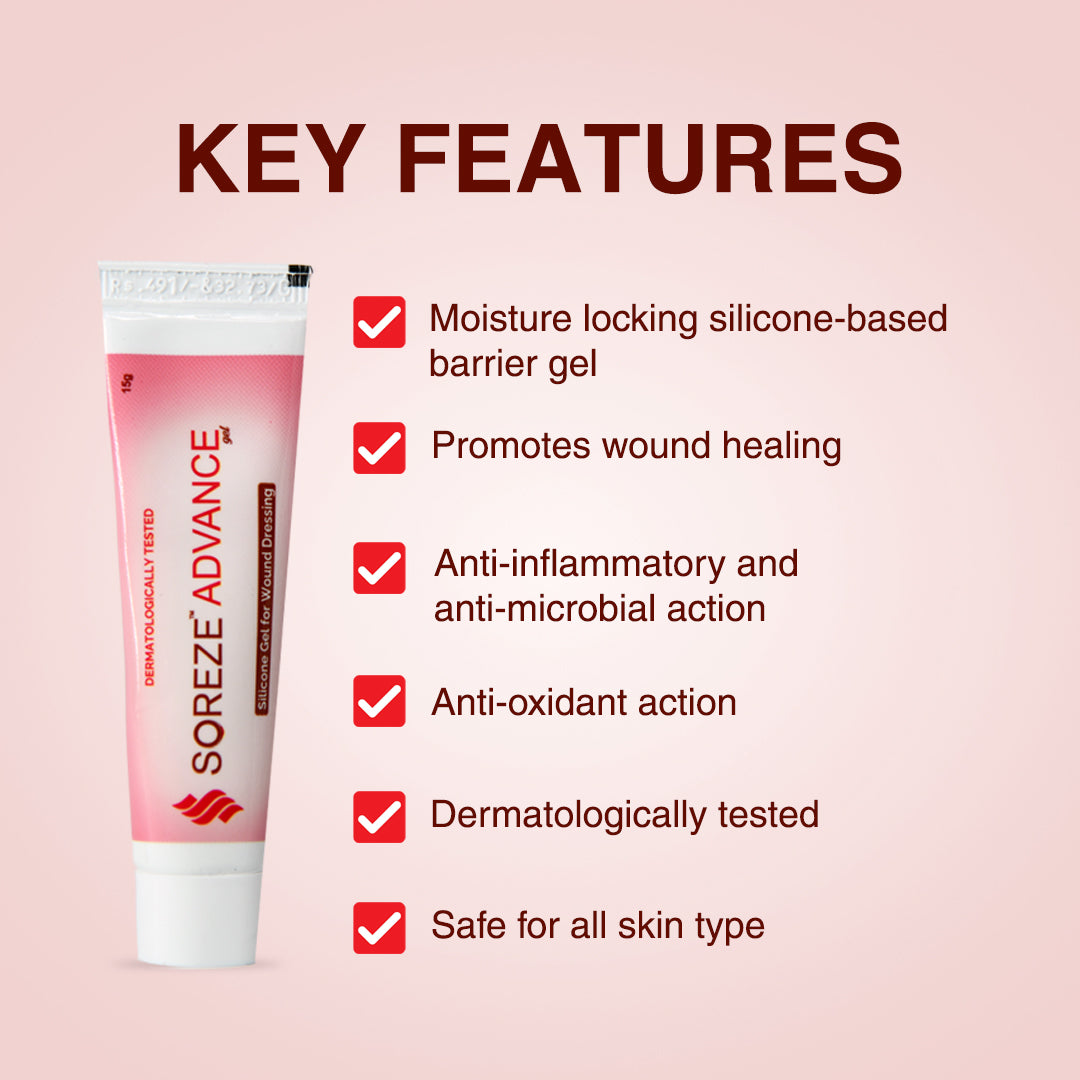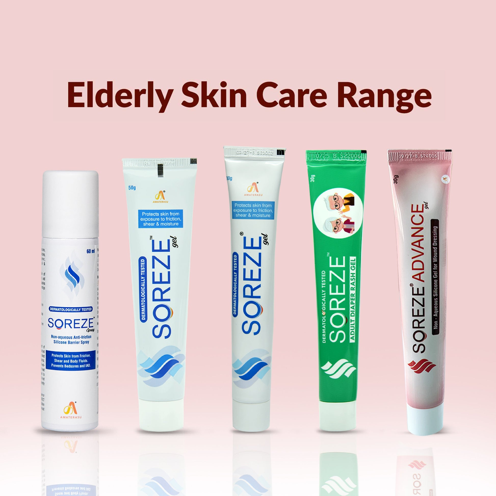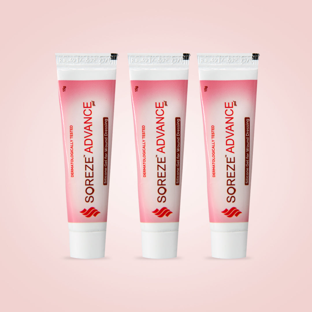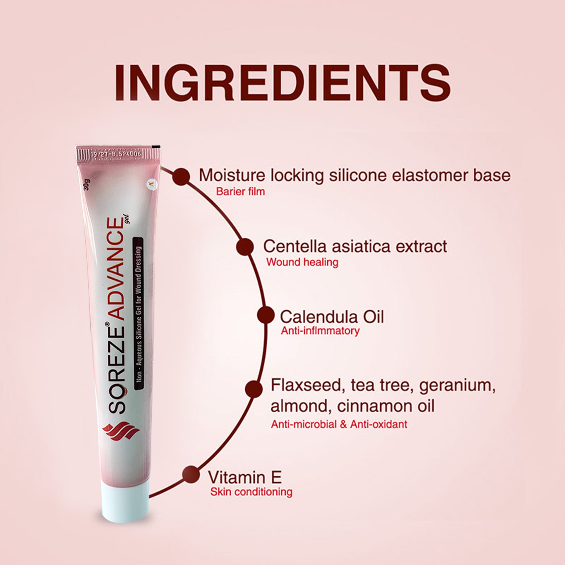 Soreze Advance Gel combines a natural recipe of herbs and essential oils with silicone elastomers that helps in healing of bedsores by forming a wound dressing that promotes moisture retention and wound healing.