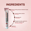 Moisture locking silicone elastomer base, Diethylene glycol monoethyl ether, Centella asiatica extract, Oils of calendula, Flaxseed, Almond, Tea Tree, Geranium, Vitamin E and Cinnamon.