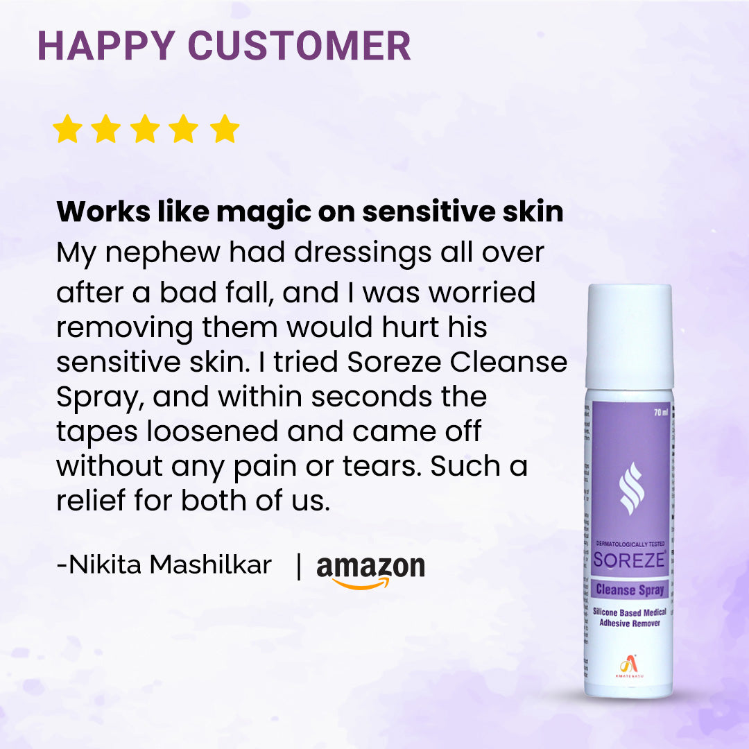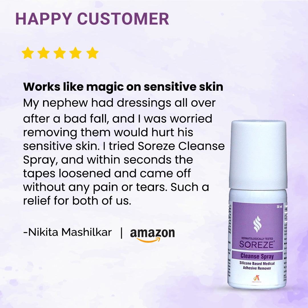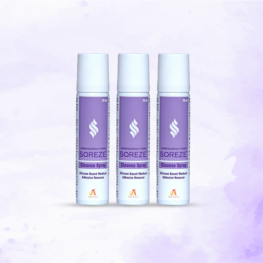 Soreze Cleanse Spray | Medical Adhesive Remover Spray | Dermatologically Tested | 30ml and 70ml