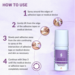 - Gently peel adhesive away from the skin continuing to spray at the intersection of adhesive tape or medical device and skin as necessary.