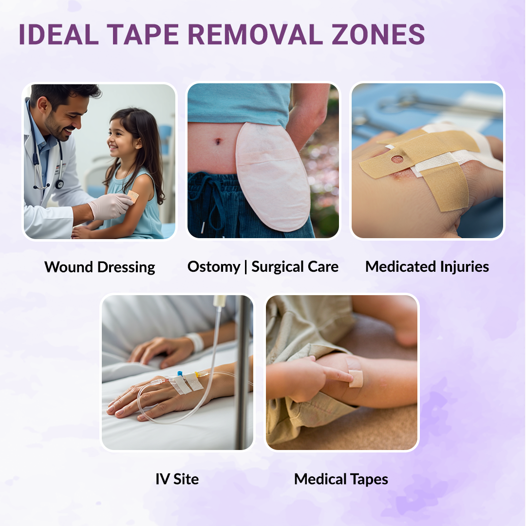 - It enables painless removal of all types of adhesives, preventing any skin damage or irritation.