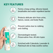 Each ingredient in this product is thoughtfully selected to protect delicate skin and promote faster healing. Silicone elastomers form an ultra-thin protective barrier that shields fragile skin from the harmful effects of moisture, urine, and faeces. Calendula oil helps reduce erythema and pain while accelerating the healing process. Lavender and patchouli oils soothe irritation and support natural skin repair. Calamine powder helps calm redness and relieve inflamed skin. Vitamin E, a powerful antioxidant, nourishes, conditions, and rejuvenates the skin for improved resilience.