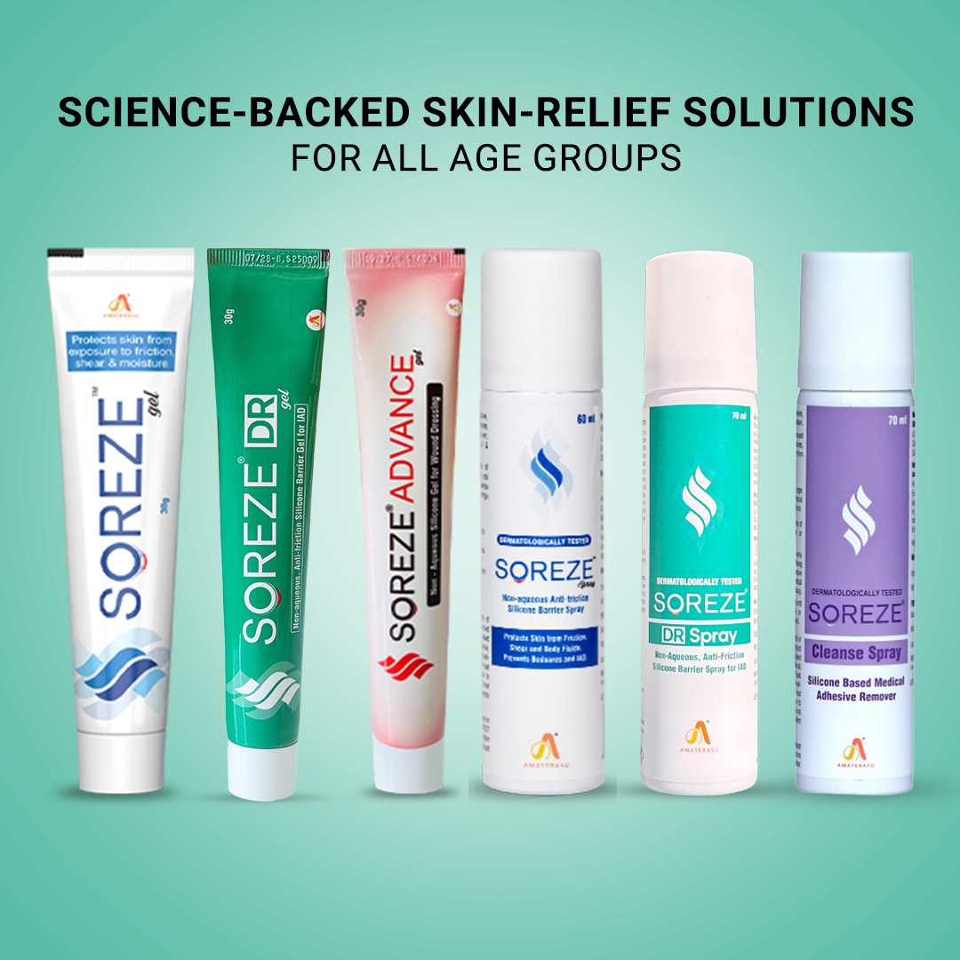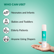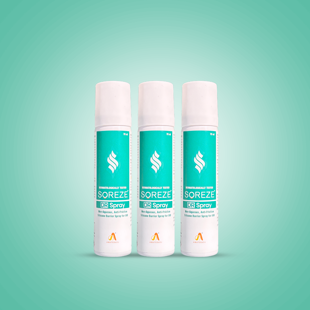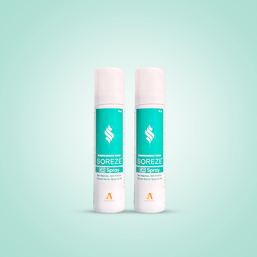 Soreze DR Spray is a touch-free, clinically proven solution designed to treat existing rashes and prevent new ones from forming. Its advanced, hypoallergenic formulation creates a long-lasting, water-resistant barrier film that protects the skin from urine, moisture, sweat, and fecal matter—common triggers of diaper rashes in babies, adults, and seniors.