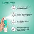 - Forms a thin, breathable, water-repellent barrier that shields skin from urine, moisture, and fecal matter.