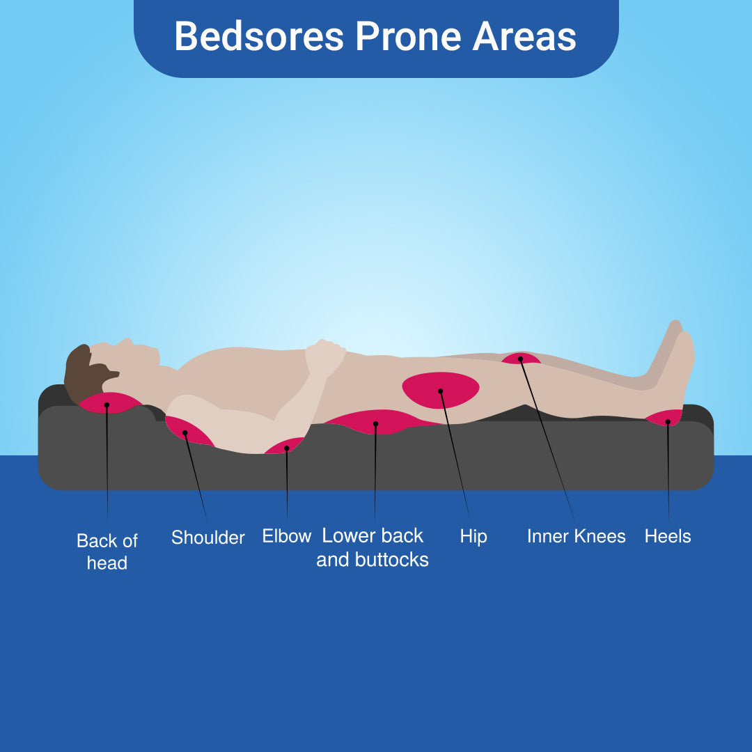 It occur on areas of the skin that are under pressure from lying in bed, sitting in a wheelchair or wearing a cast or brace for a prolonged period of time; or in areas that are continually wet. They are more likely to develop on bony parts of bottom, the areas in contact with the bed or chair such as tail bone, heels, elbows, shoulders etc.