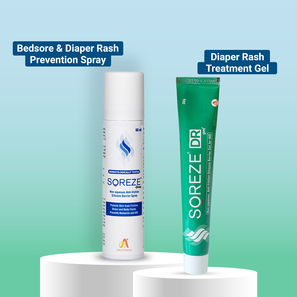The alcohol-free formula of Soreze Spray is easy to apply and dries up quickly to form a long-lasting, water-repellent, protective barrier film that reduces friction and inhibits direct contact between skin, urine, and other body fluids. This barrier film protects skin exposed to irritation from urine, stool, and other body fluids thus preventing diaper rash & helps relieve skin irritation or redness in pressure-prone areas.